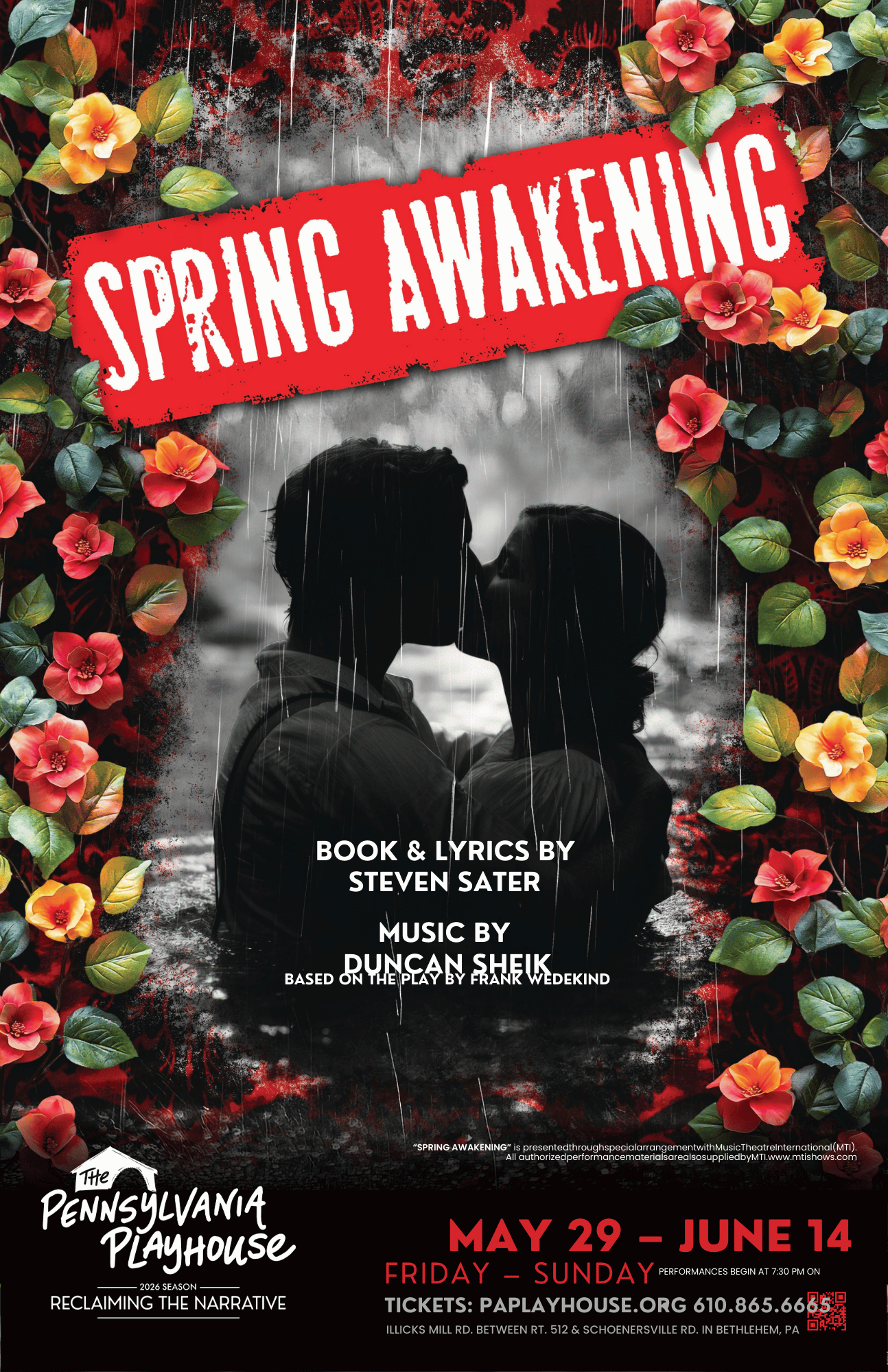 In order to be involved with Spring Awakening at the Pennsylvania Playhouse, you must be 18 years or older by the first rehearsal on March 16th.